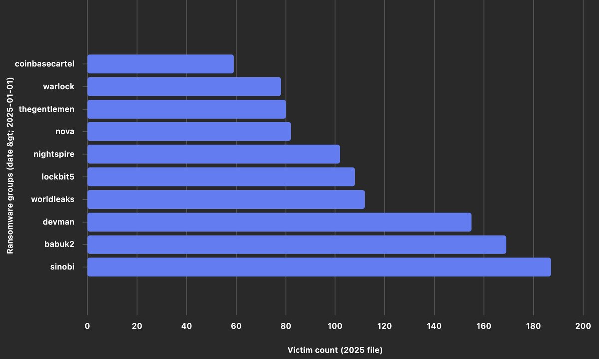 These numbers highlight how quickly new actors can scale their operations. Groups like Sinobi and Babuk2 not only appeared late in the year but still managed to compromise hundreds of organizations globally.